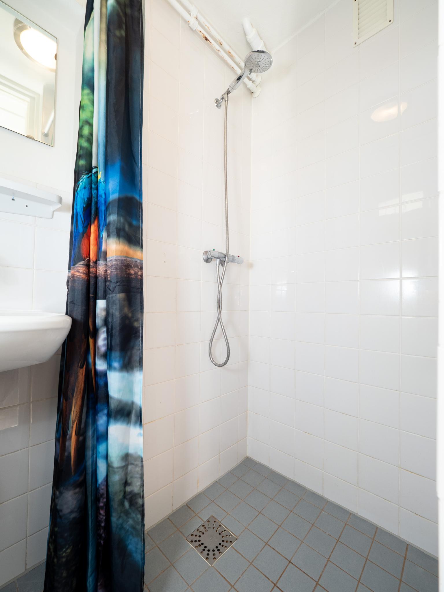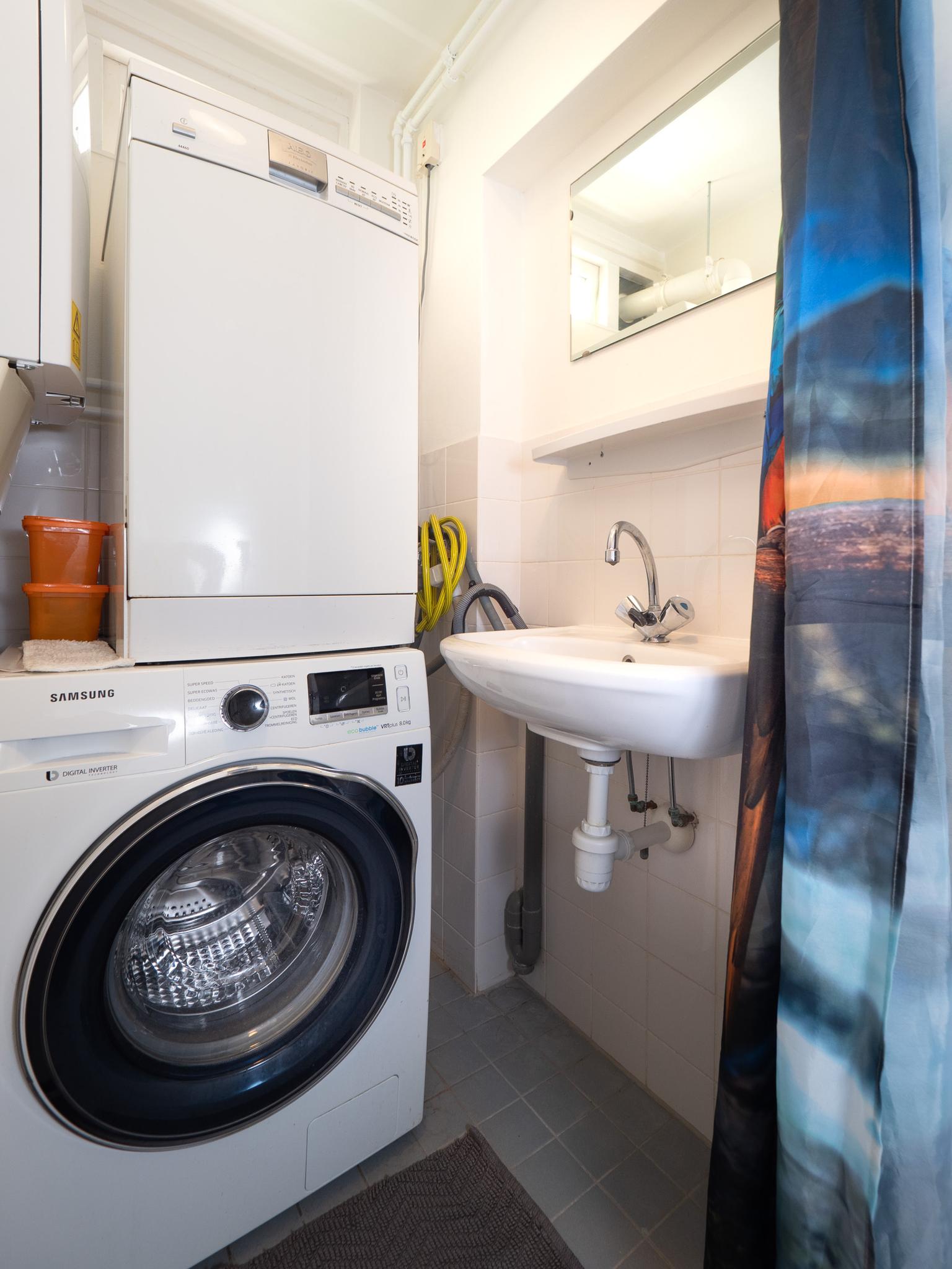 Op deze badkamer is ook de aansluiting voor de wasmachine en de CV ketel.