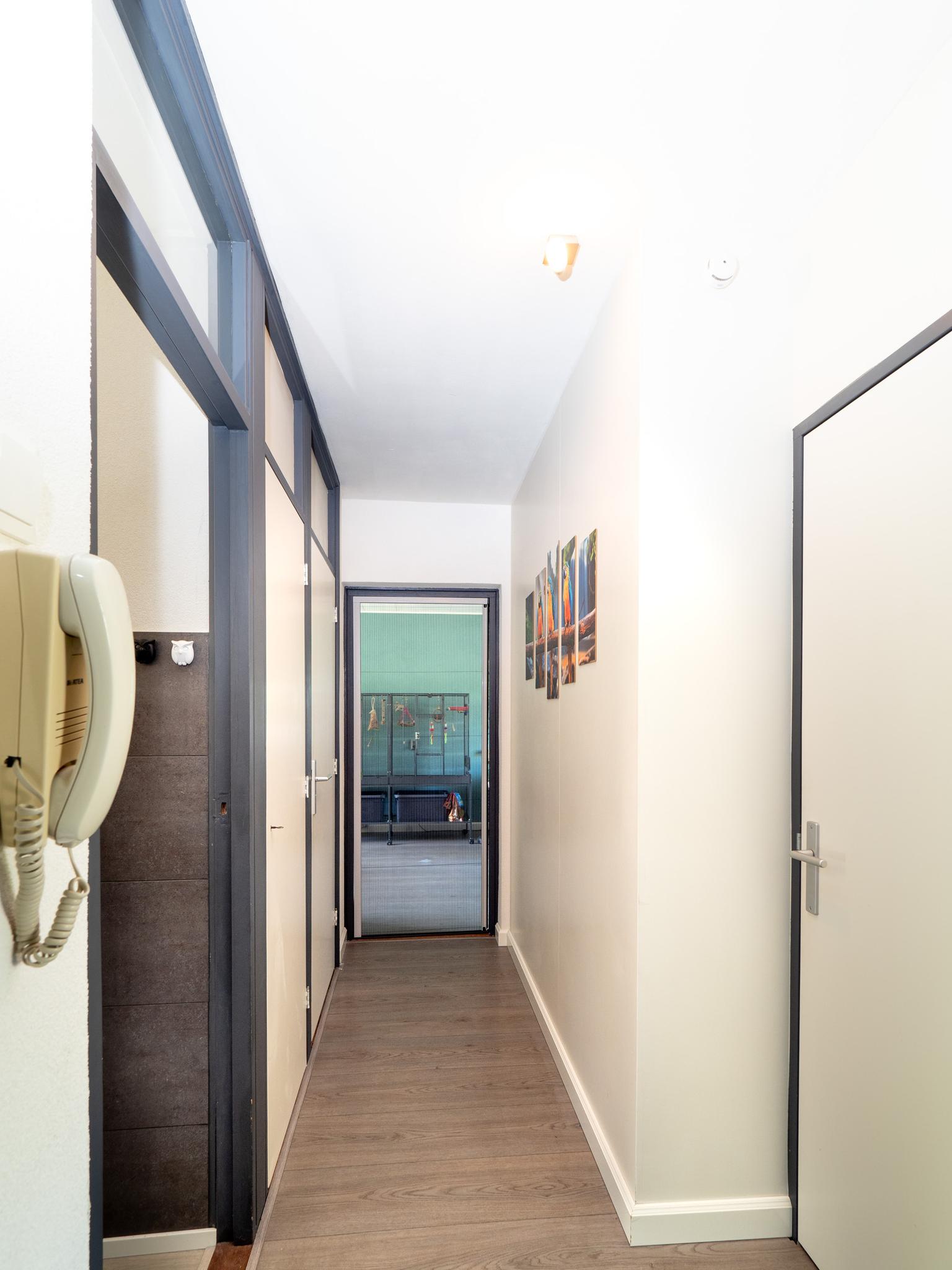 Gemeenschappelijke entree met trappenhuis en toegang tot de fietsenberging.