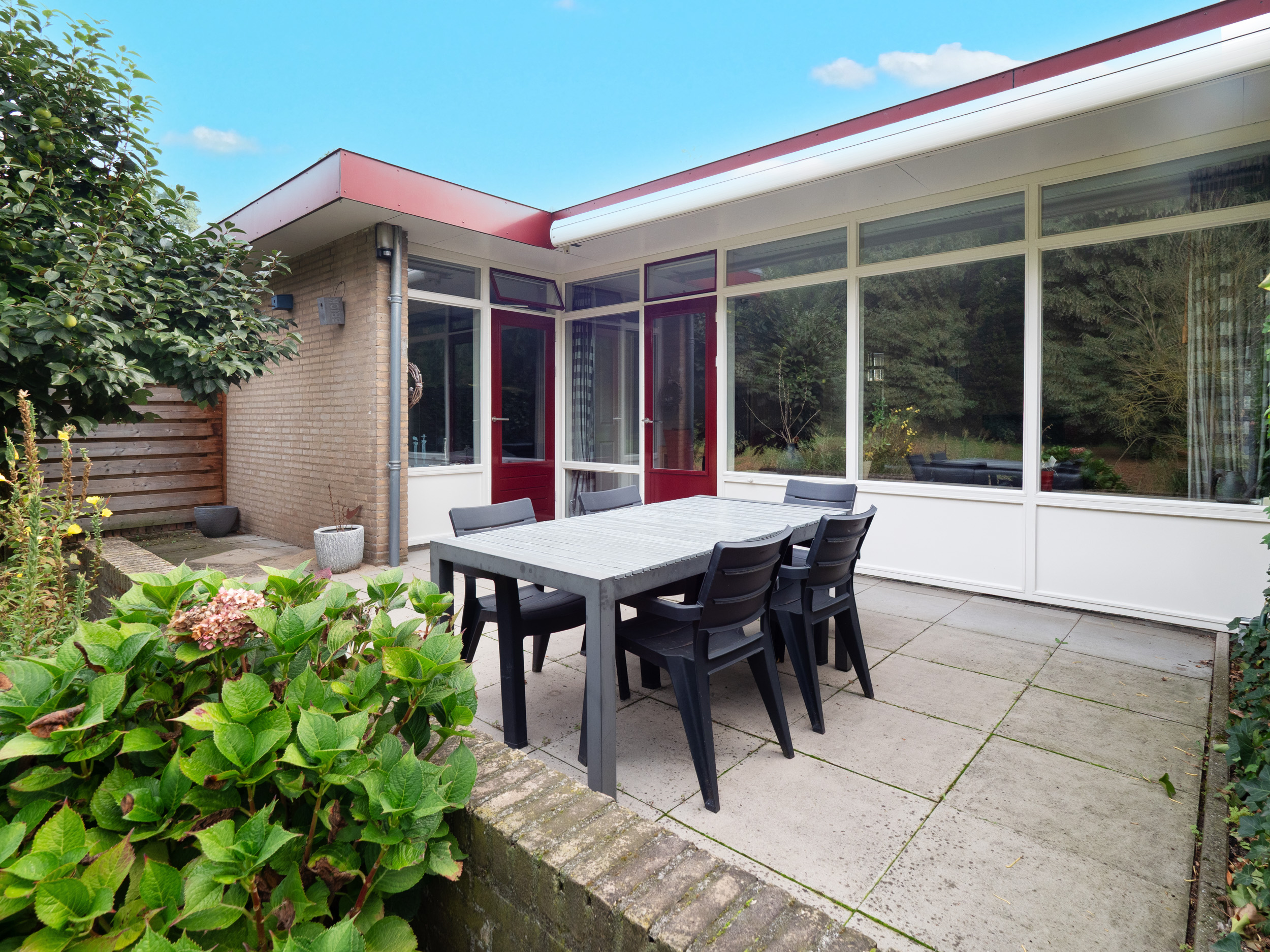 Aan de voorzijde van de woning een diepe voortuin met royale oprit geschikt voor meerdere auto’s.