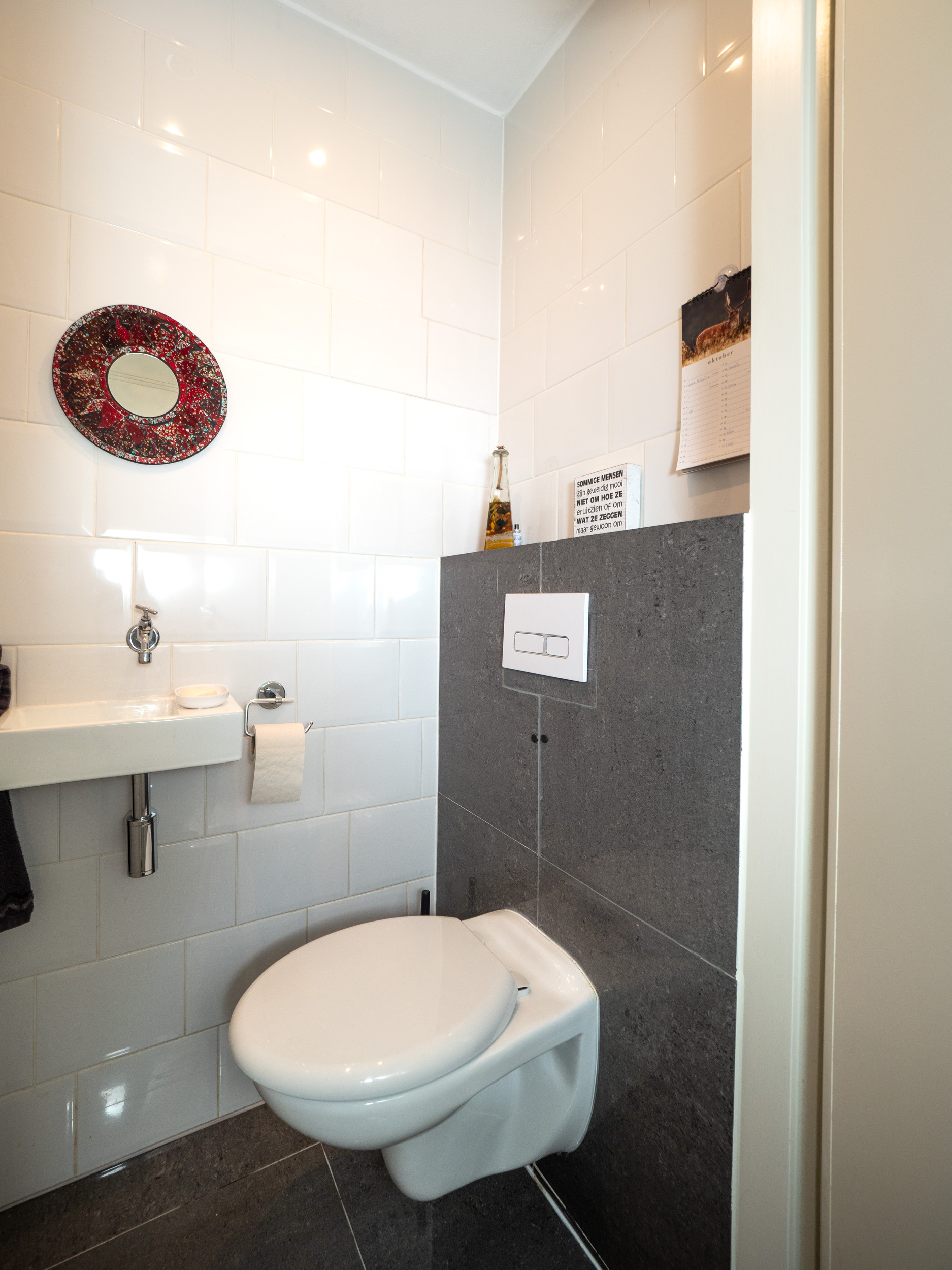 Toilet met wandcloset en fonteintje op de begane grond.