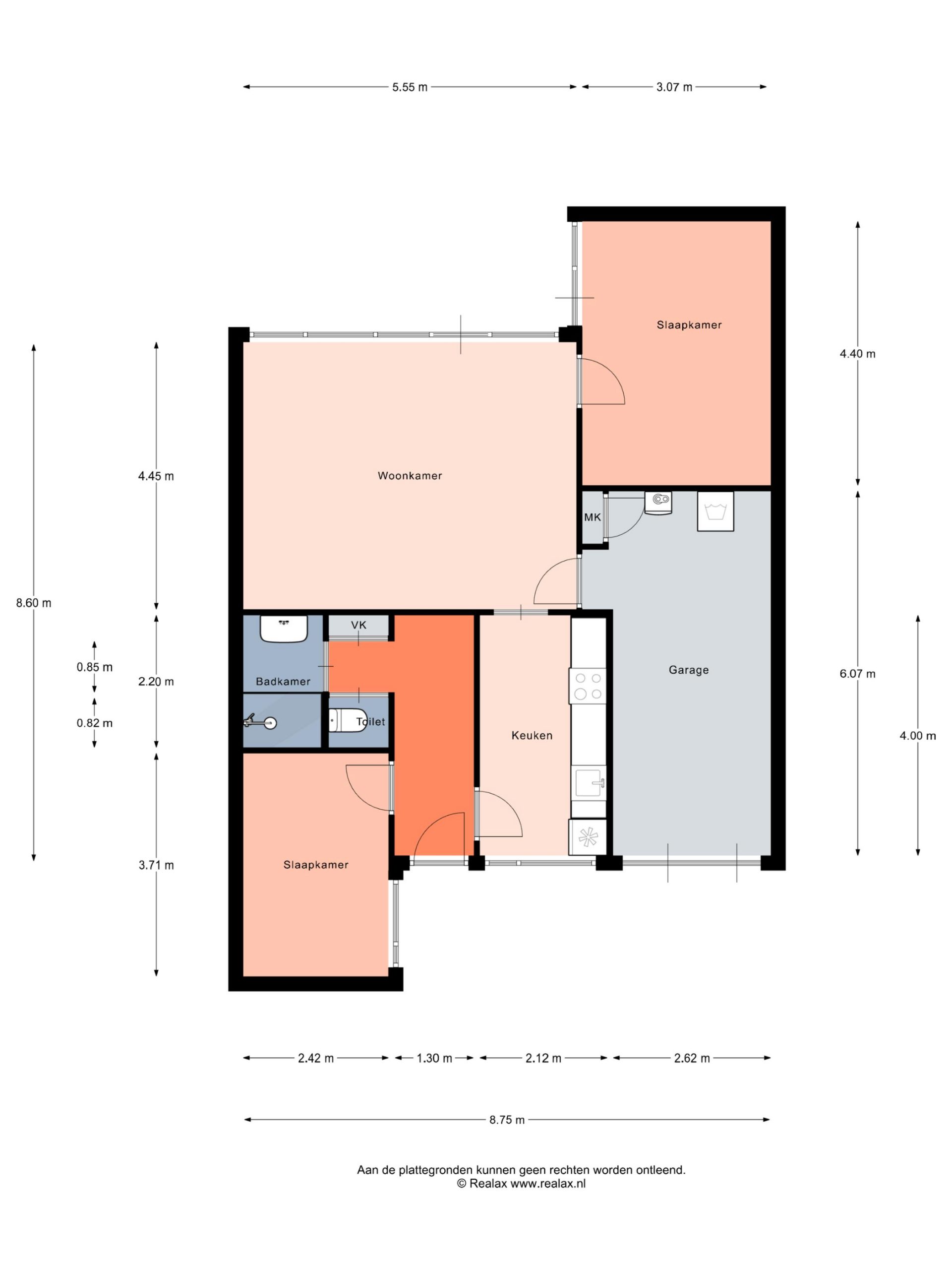 Entree, gang, bergkast, toilet, badkamer, slaapkamer/werkkamer, gesloten keuken, woonkamer, slaapkamer, garage.