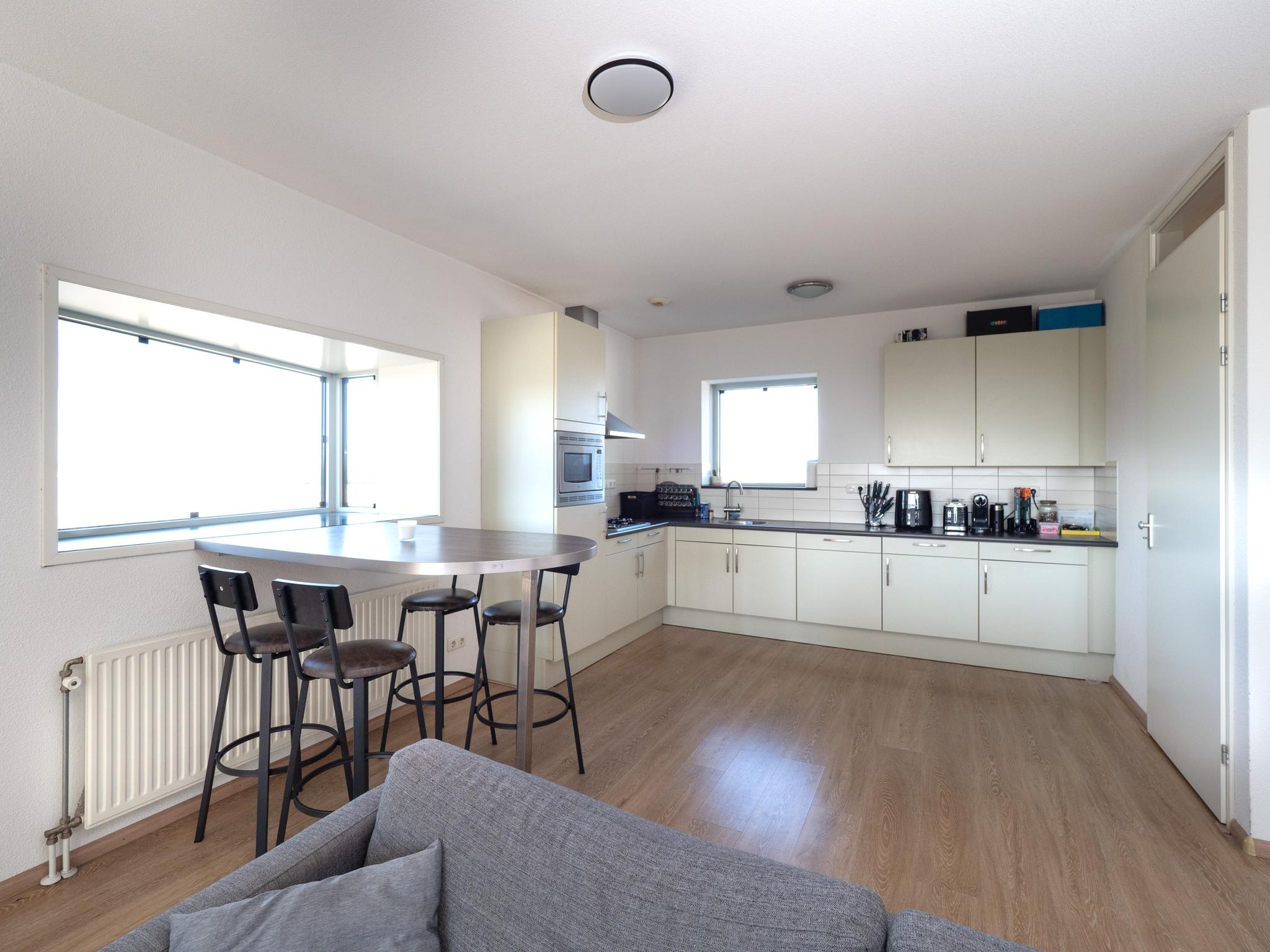 Het appartement is voorzien van een mooie laminaatvloer, wandafwerking is stucwerk.