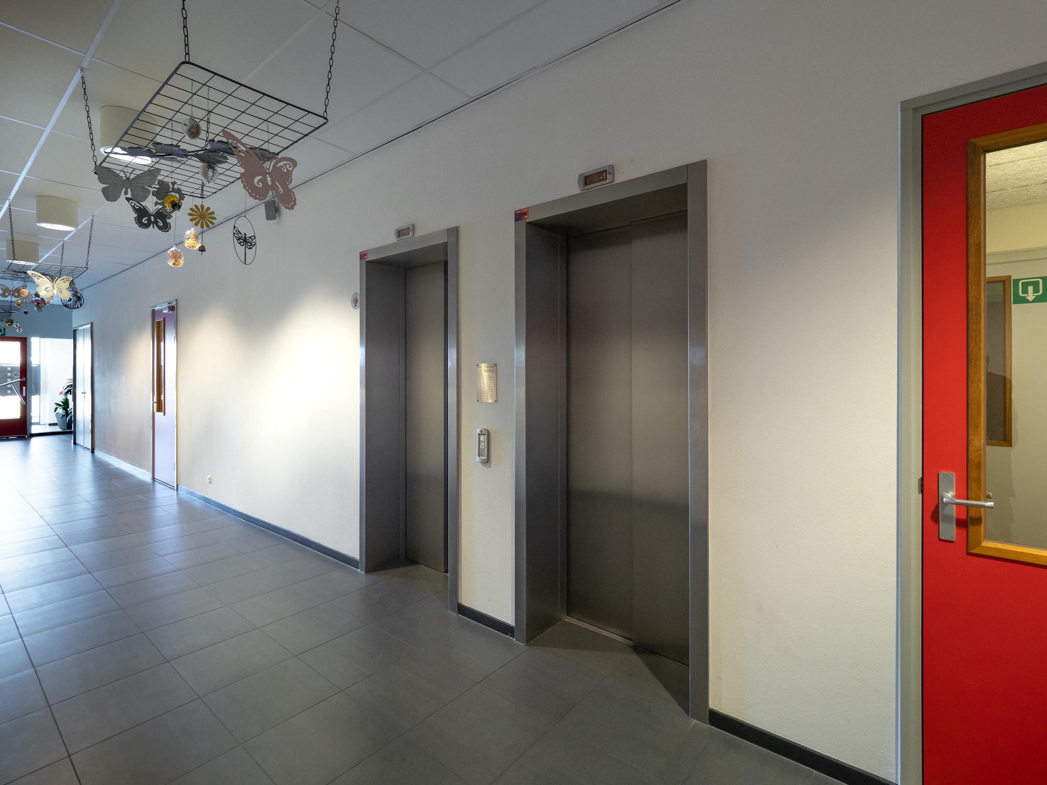 Centrale entree met lift en toegang tot bergingen.