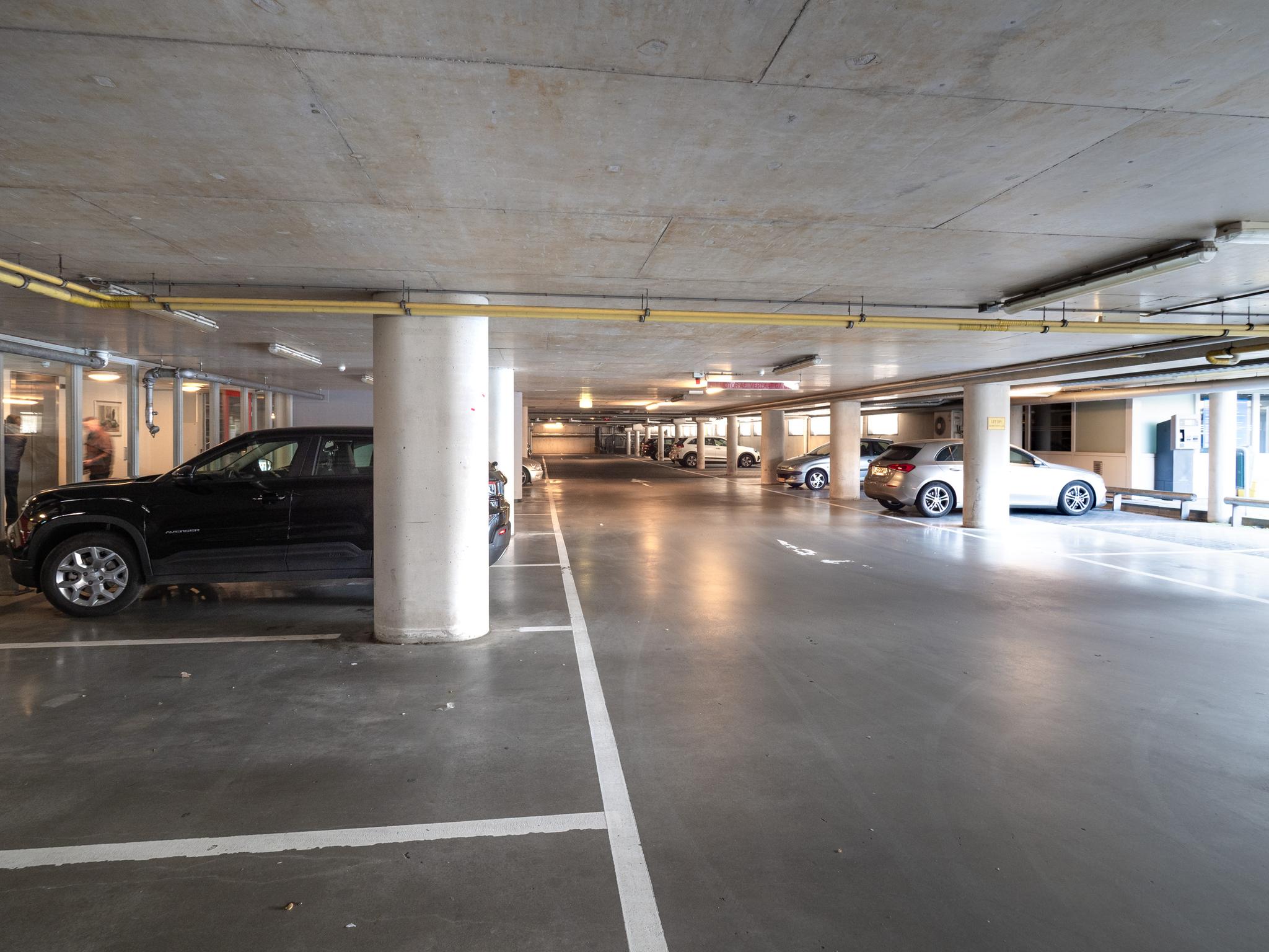 In de ondergelegen parkeerkelder heeft u de mogelijkheid een parkeerplaats te huren.