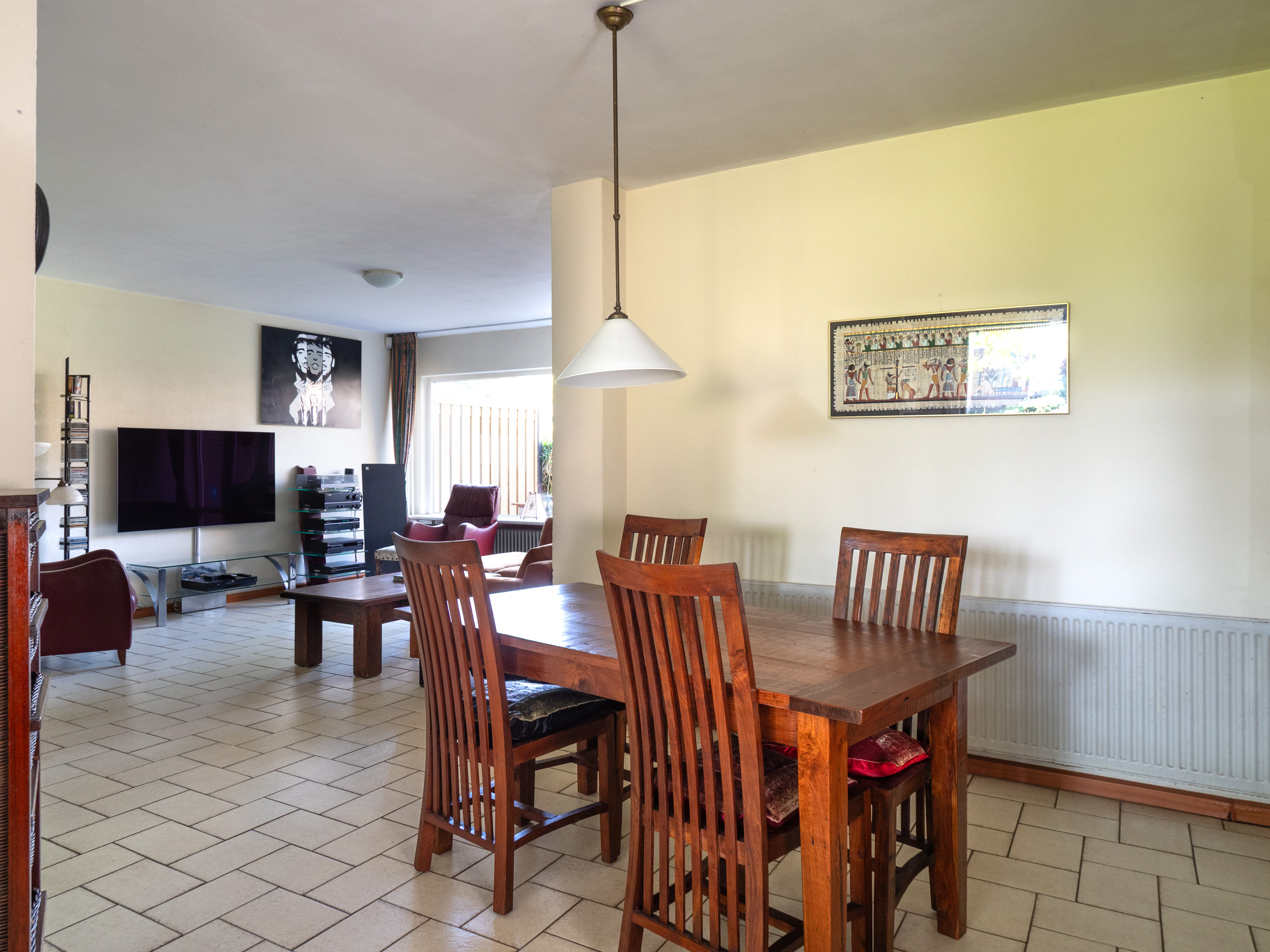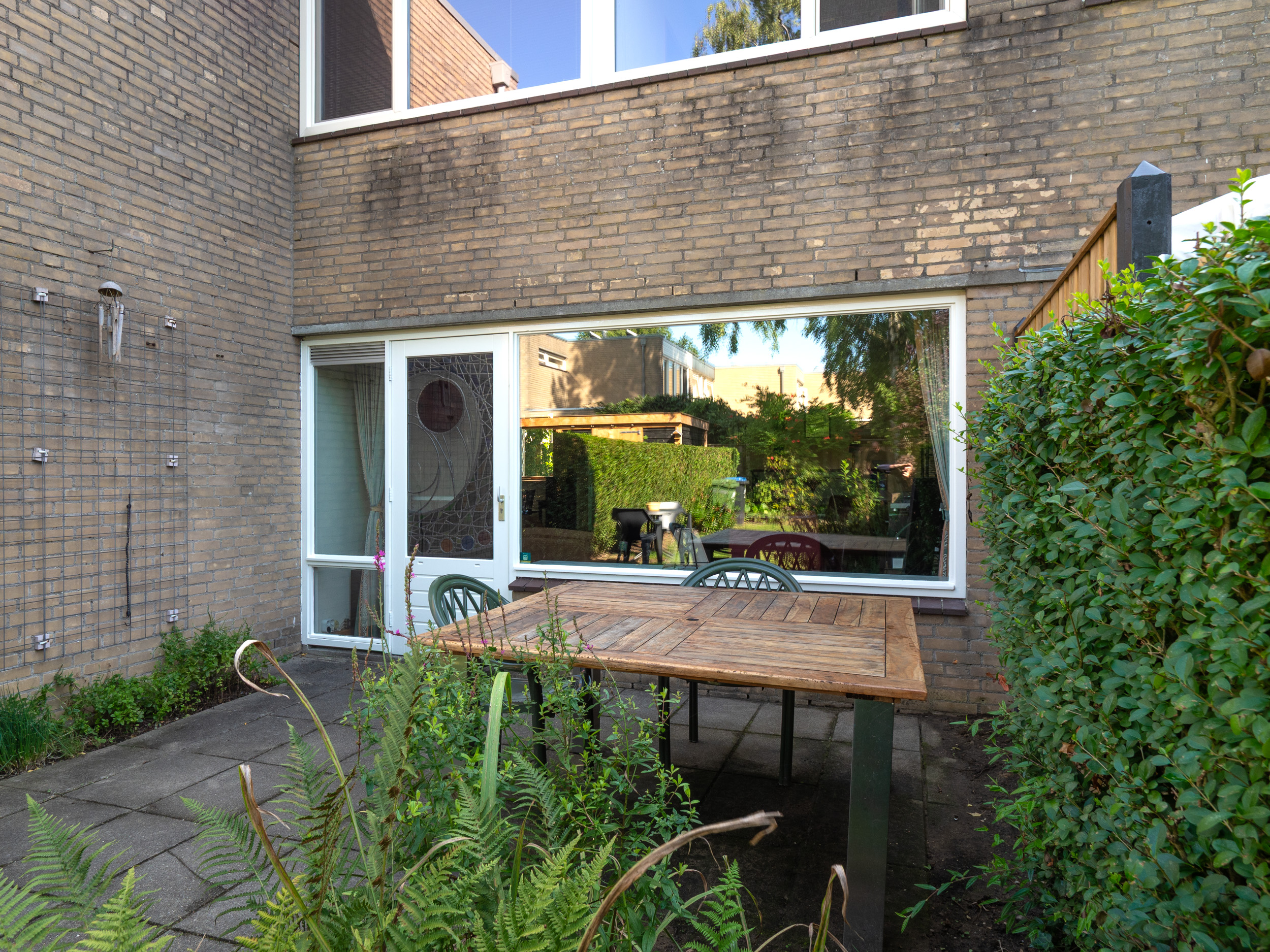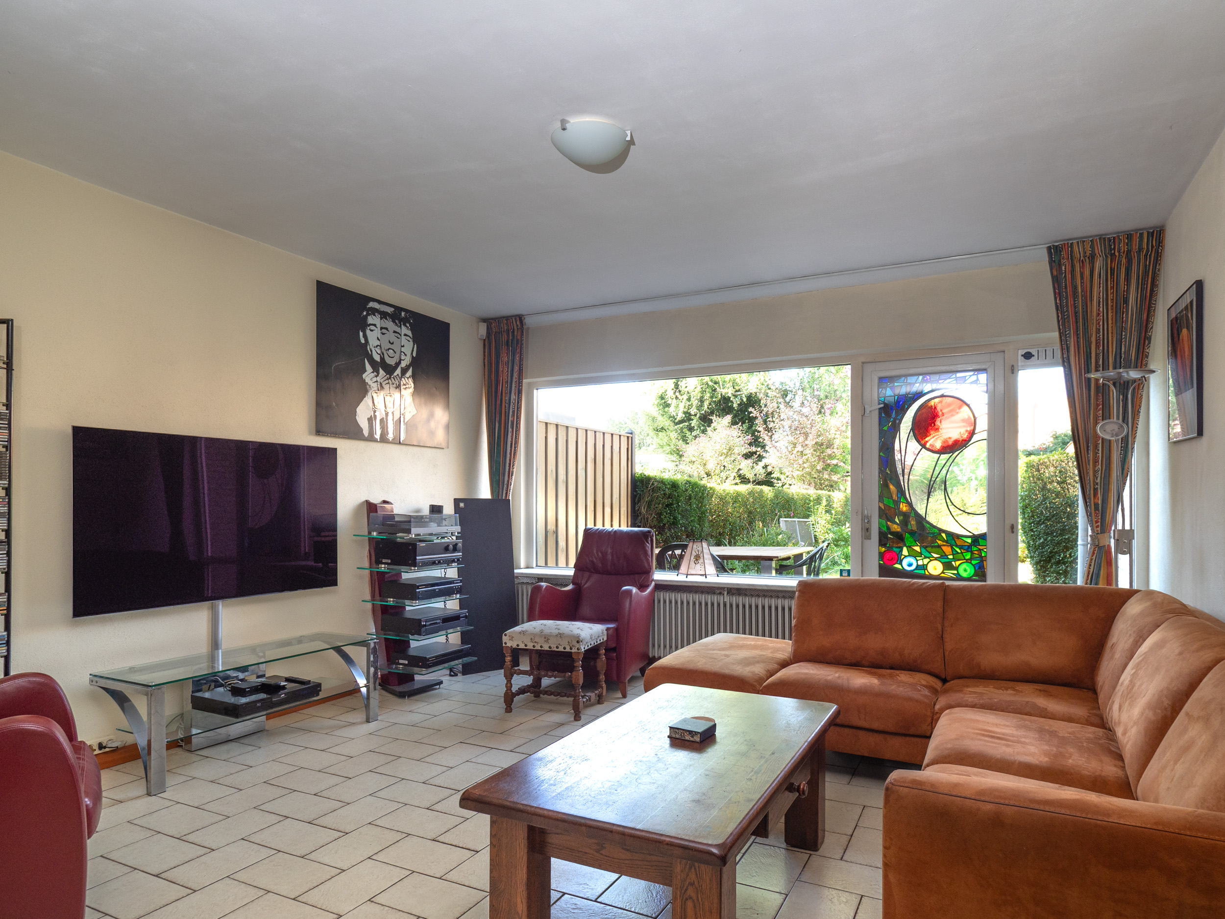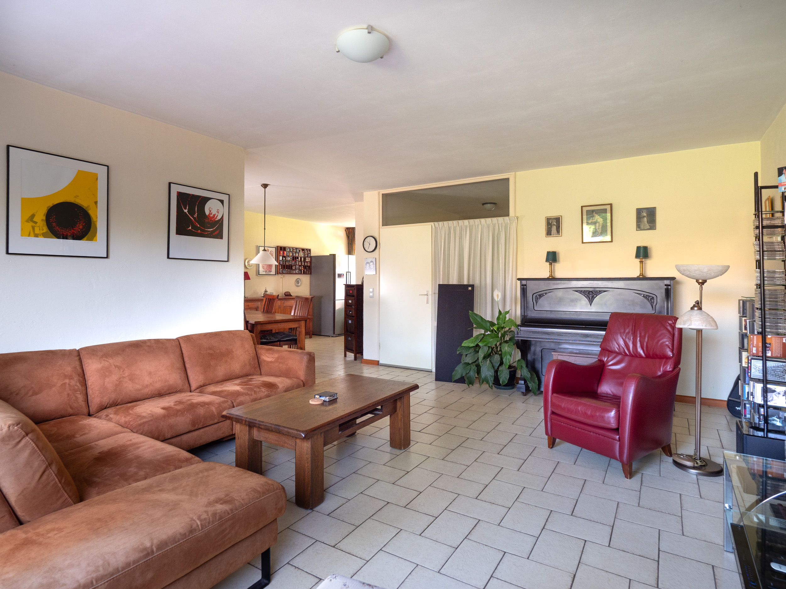 Zo heb je een hele ruime tuingerichte woonkamer met halfopen eetkeuken.