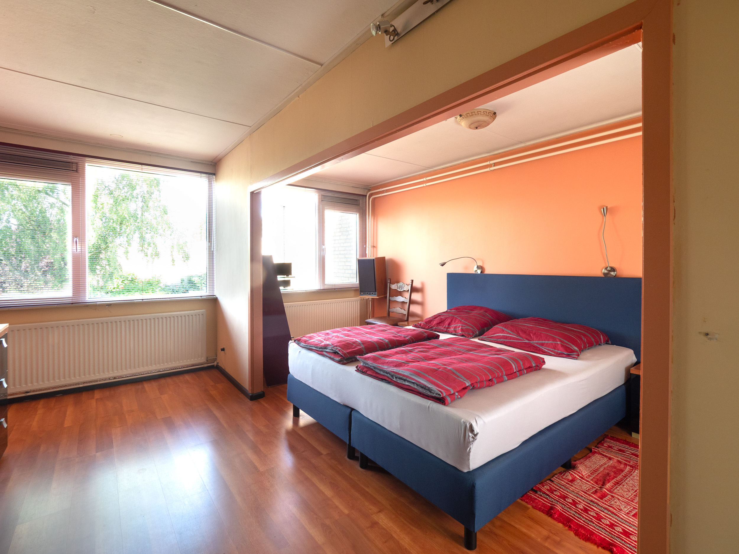 Op de verdieping zijn 4 slaapkamers waarvan de huidige bewoners er 2 hebben samengevoegd tot 1 grote ouderslaapkamer.
