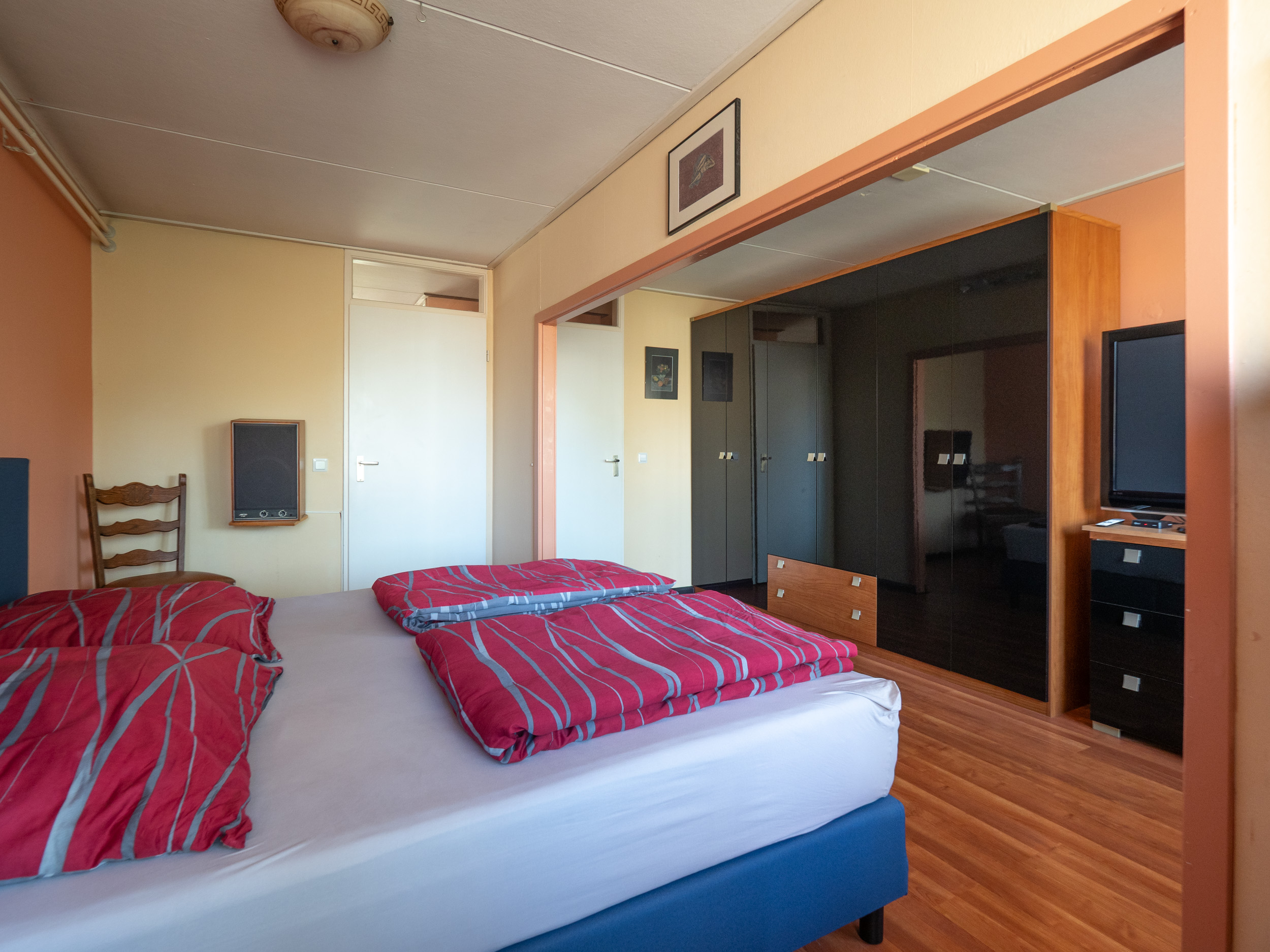 De kozijnen op deze verdieping zijn vervangen door kunststof en de voorslaapkamer heeft een bergkast en balkon.