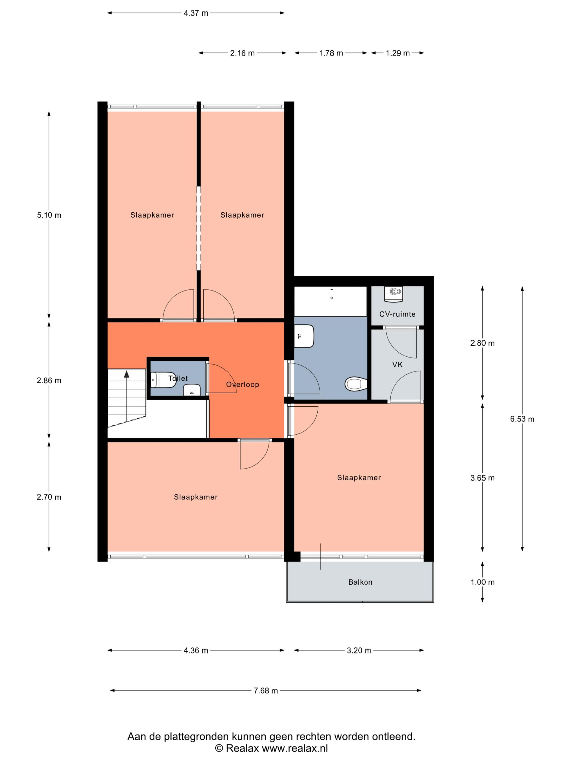 Overloop met separaat toilet, 3 slaapkamers (voorheen 4 kamers en eenvoudig terug te brengen),