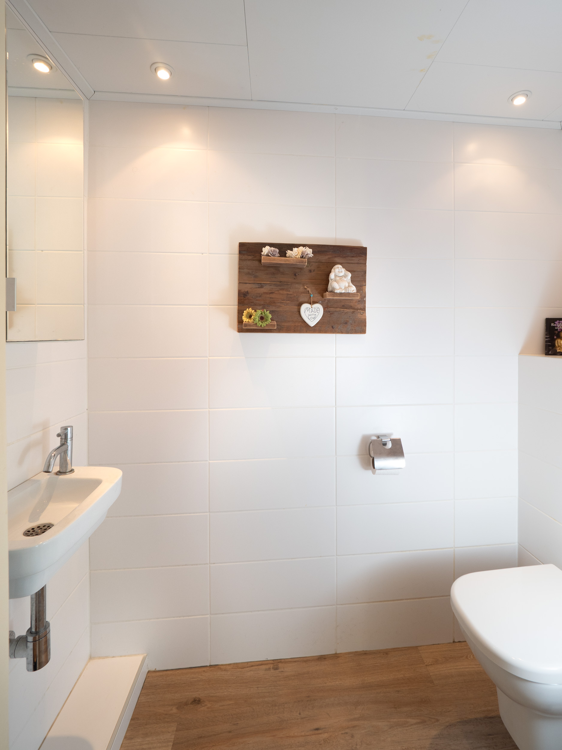 Toilet met wandcloset en fonteintje op de begane grond.