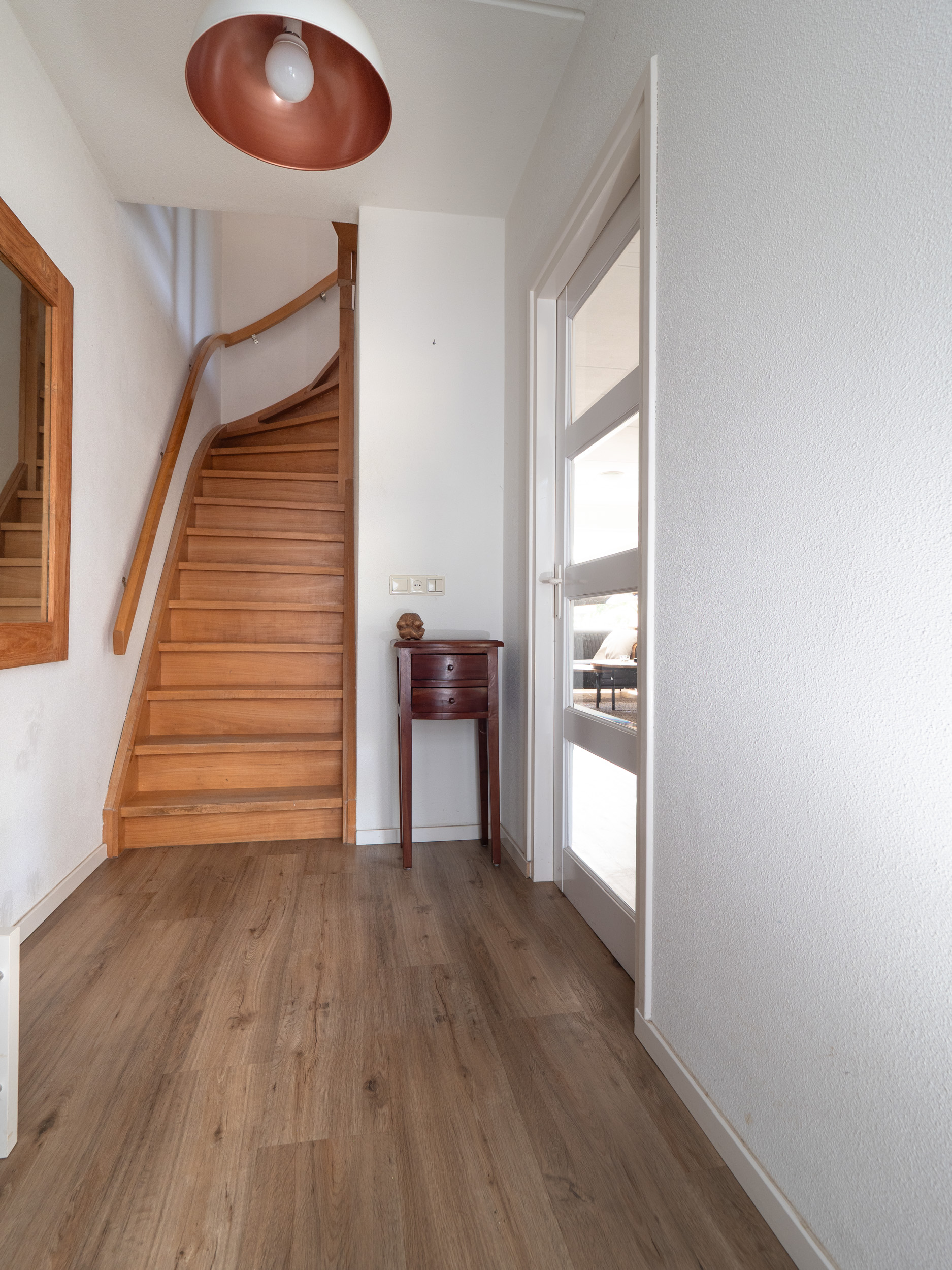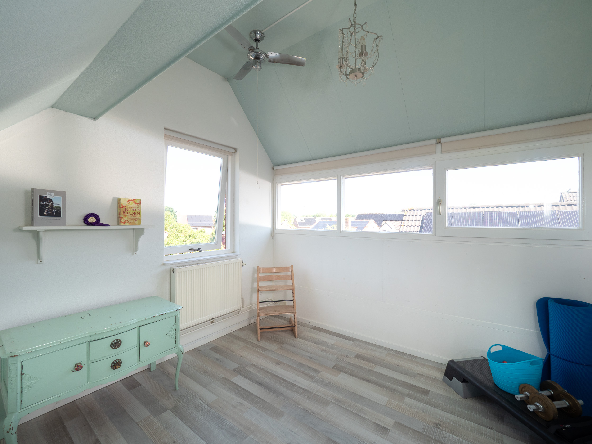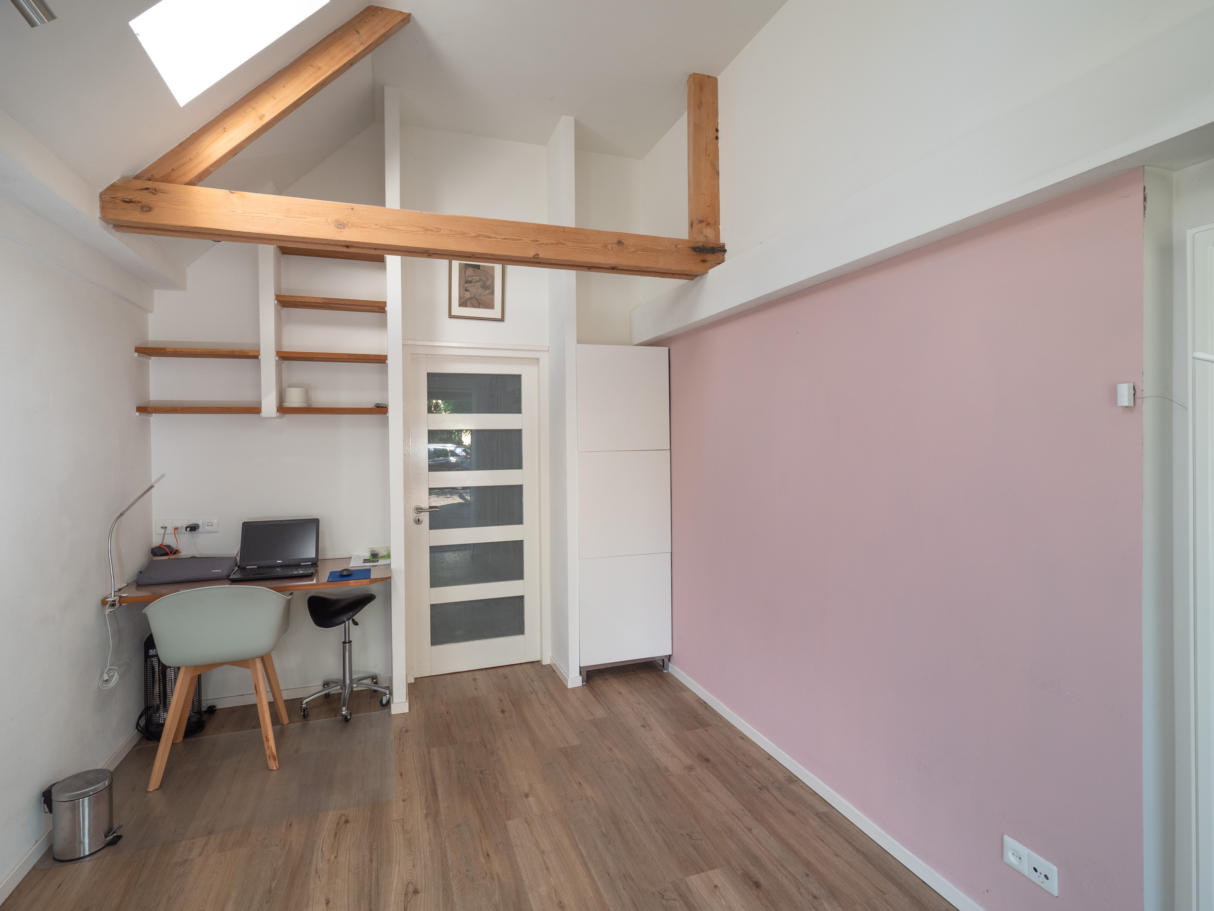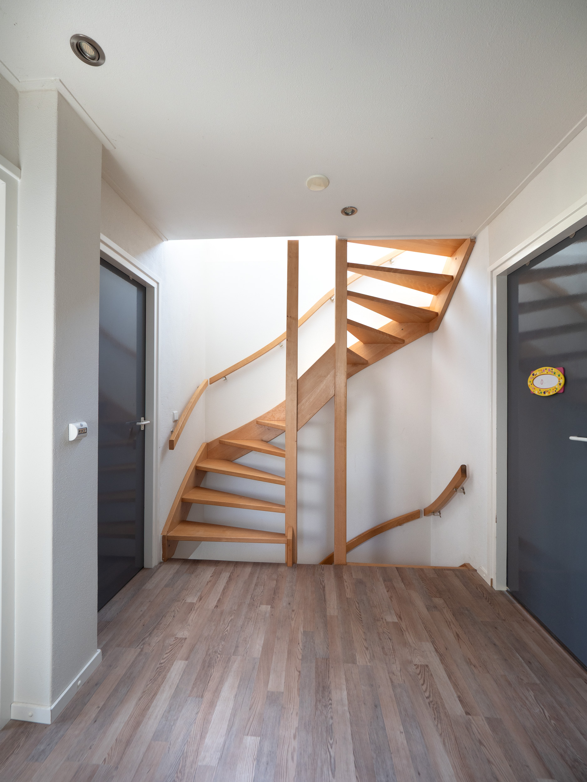 De vloerafwerking op deze verdieping bestaat uit een laminaat vloer in combinatie met een rustige wandafwerking.