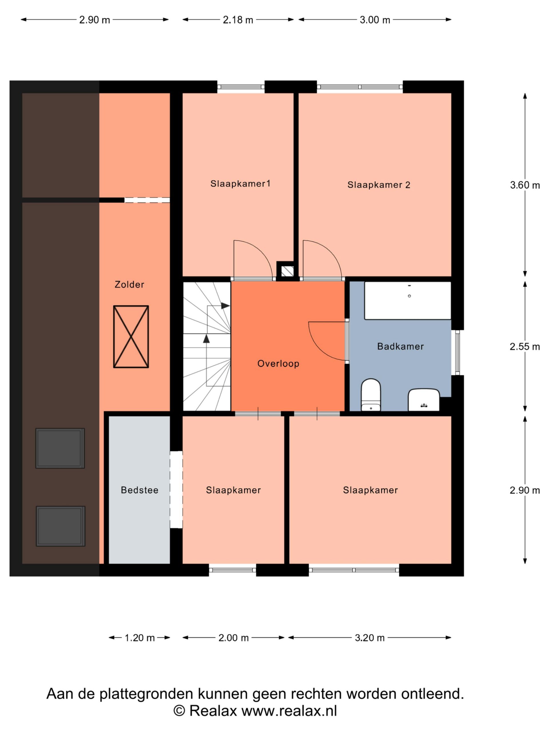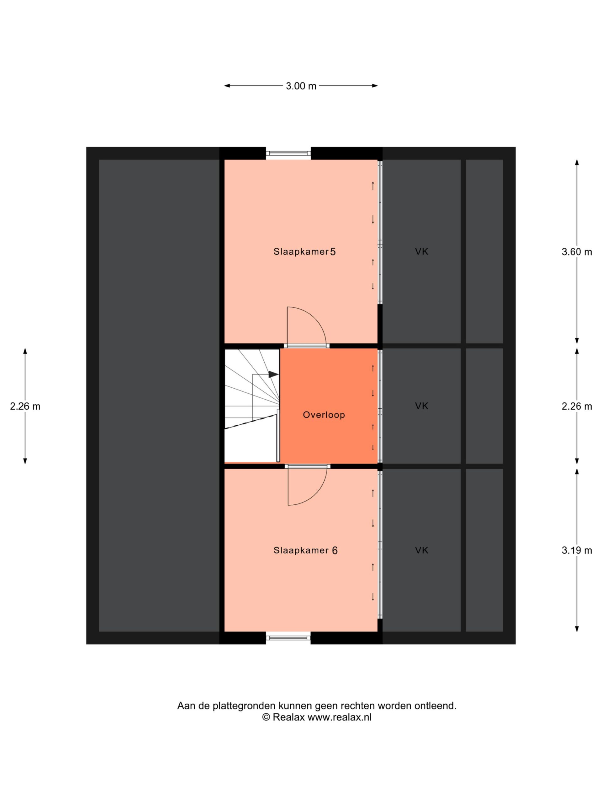 Overloop met bergkast, 2 slaapkamers (10-11m2).